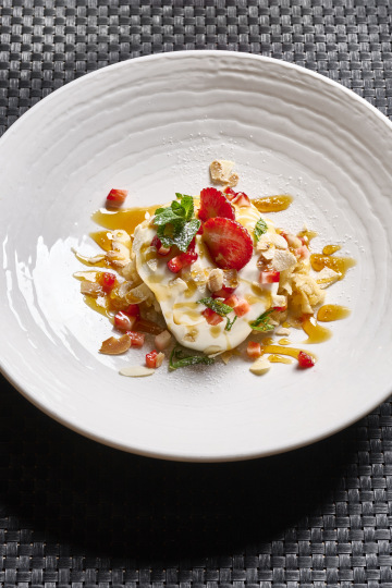smetana, čerstvé ovoce, máta