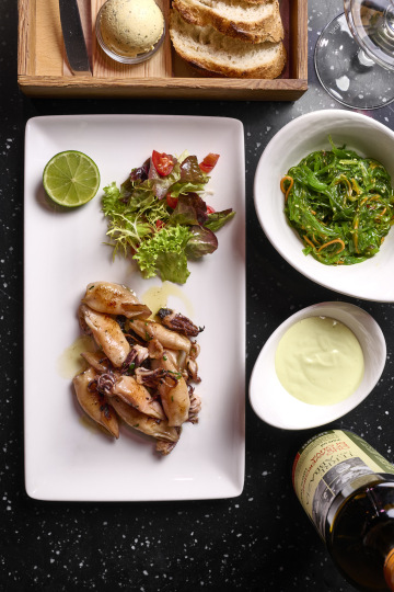 grilované kalamáry, česnek, chilli, olivový olej